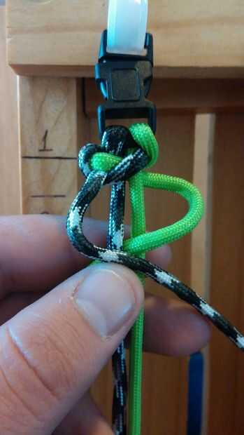 4) lentamente apriete el nudo como última vez. Realizar los ajustes necesarios para mantener el filamento de la frontera en el exterior y el nudo apretado. Empuje el nudo hacia arriba y apriete.