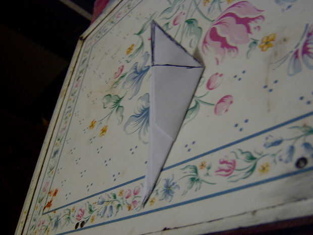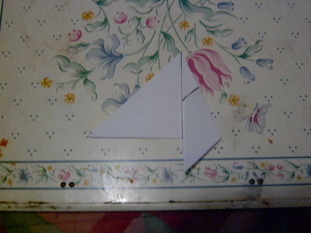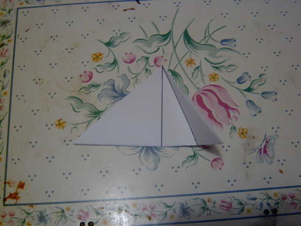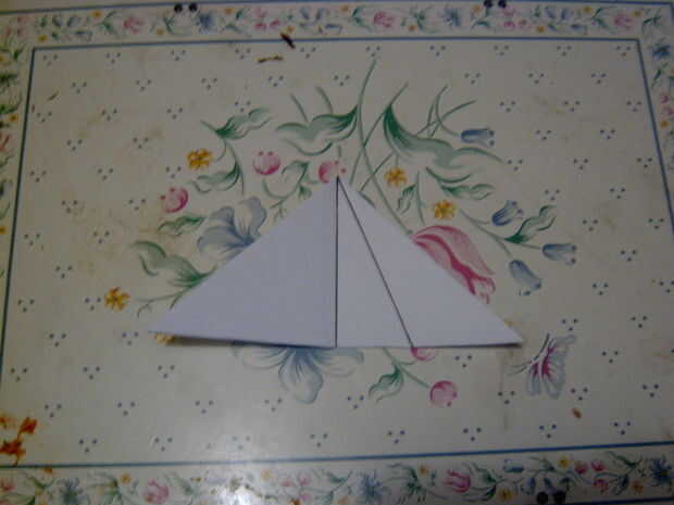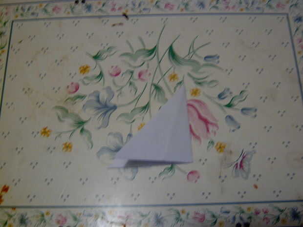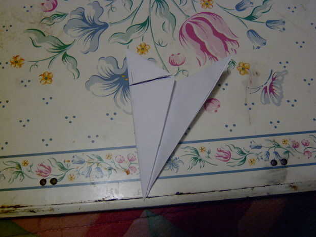 9 ahora plegar el pliegue de centro para conseguir una forma de flecha a la aper