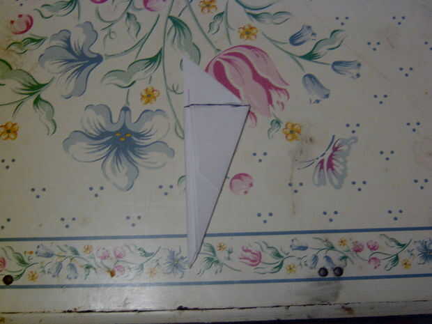debe haber una abertura pequeña en el lado del papel, coloque la aleta que está pegando hacia fuera en la apertura. parece que la imagen. Si lo tienes en tus manos sabrás lo que quiero decir. Asegúrese de que va todo el camino.