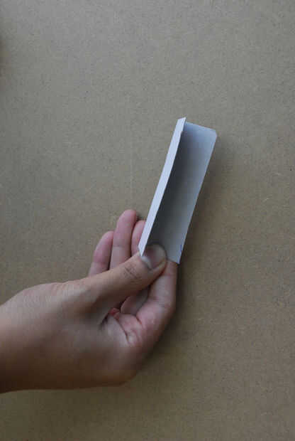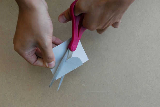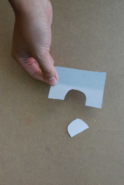 Necesitaremos un rectángulo que es tan amplio como la "Palma", pero sólo la mitad de altura. Este paso puede ser muy confuso, si no dices por esa primera frase. Doblar el rectángulo por la mitad y cortar una forma de medio círculo en uno de los pliegues. Debería verse como un túnel en una colina. Punto de la pieza hacia fuera en el ejemplo que usted que trajo al taller para intentar ilustrar.