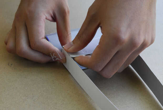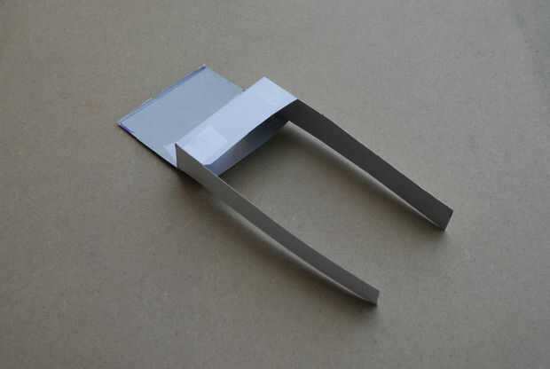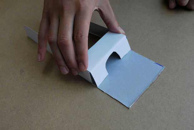 La pieza de "el túnel" tiene los "dedos" vertical. Este paso también puede ser confuso, es casi mejor para sólo mostrar el paso varias veces en lugar de utilizar palabras. Cinta de los bordes laterales del túnel a los bordes de los dedos. El túnel debe hacer frente lejos de los dedos. Cubrir todas las costuras con la cinta.