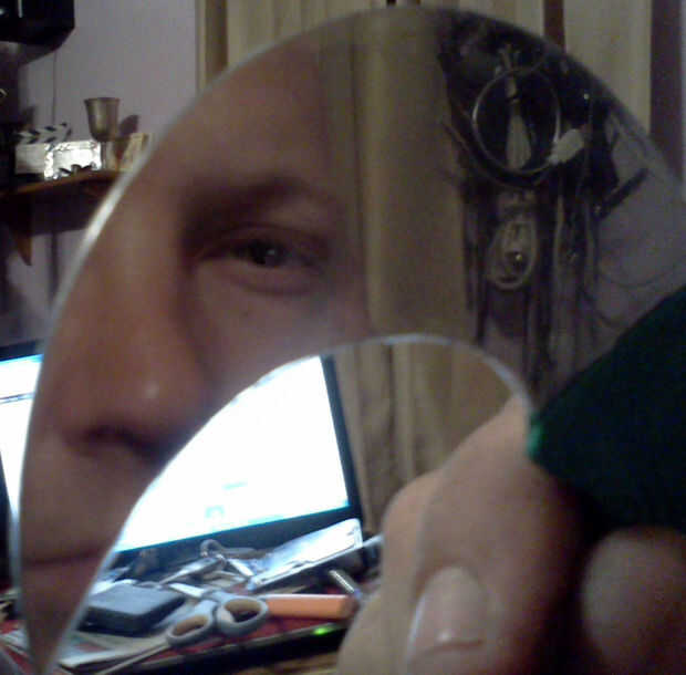 últimamente he sido esforzándose para volver al gimnasio y comienzo volver a estar en forma; Una cosa que es un ritual diario después de un buen ejercicio es una ducha y un afeitado (afeitado en una ducha de agua caliente es ideal para reducir golpes de navajas de afeitar pero a ningunos espejos así que siempre tengo que traer uno conmigo) supongo que soy un poco bruto en el afeitado, aunque cada vez tirar mi bolso rompí mi espejo. Sentada en mi taller frustrado sobre el pensamiento de tener que comprar otro nuevo espejo teniendo una parte viejas unidades de disco duro para los imanes noté cómo brillante los platos eran, como es mi estilo para cosas de diseño en torno a mi espíritu guerrero (o como mi primo lo llama en broma "Guerrero Punk"):