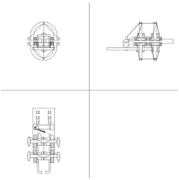 Primero de que tenemos un bloque (madera, metal) que es la base de la garra. En se encuentra un mango con una palanca para el uso de la garra.