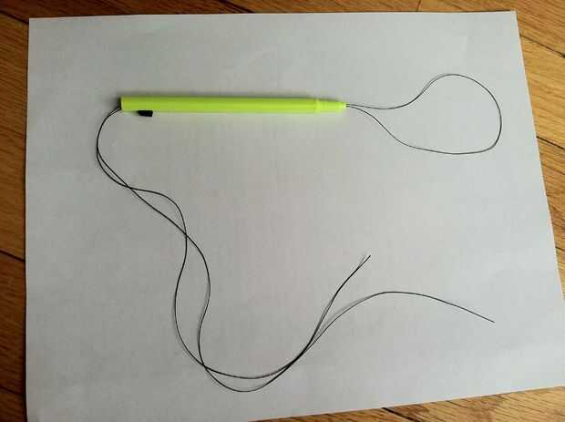 Había desmontado un lápiz mecánico para mina. También puede usar un lápiz viejo. Sólo tiene que ser hueco, abierto en ambos extremos, y el "lazo" final debe tener una abertura relativamente pequeña.