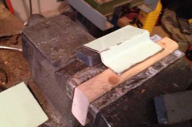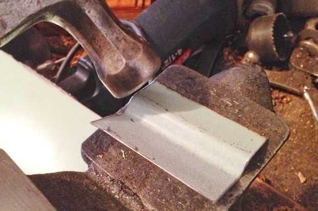 usé una amoladora para alisar los bordes de las piezas de metal de hoja. Que utiliza la prensa para doblar el metal de hoja y trucar las curvas hasta que el ajuste fue bastante bueno. Ver la segunda foto. Algunos ajustes en las curvas eran más fáciles si los entregó y golpeado con un martillo.