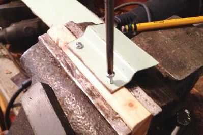 hice cierto ajuste de la chapa el imán y la tira de listón. He marcado la ubicación de los orificios de montaje y había perforado el metal de hoja. Luego perforar agujeros más pequeños en las tiras de listón y une el metal con tornillos. Repetí el proceso para la otra mandíbula suave.
