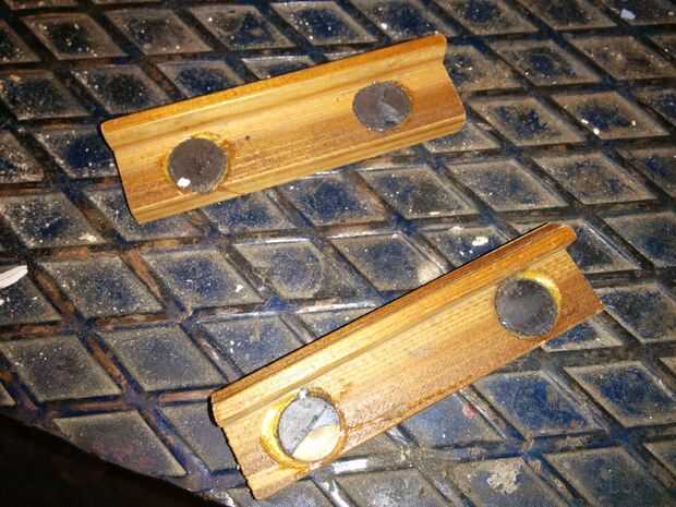 yo estaba cavando en mi cubo de madera de desecho cuando golpea en esta pieza sobrante del ajuste. Me di cuenta de que dispone mi mordazas de perfectamente, así sólo cortar dos piezas, emparejar la anchura de las mandíbulas. A continuación, utilizar una pieza Forstner, aburrido dos huecos en el interior de ellos, para albergar algunos imanes redondos baratos había comprado anteriormente. He pegado en su lugar con un poco de resina epoxi de dos partes y esperando para fijar completamente. Anuncio que se puede ver en las fotos, uno de los imanes se rompió porque su nicho no era profundo, así que cuando aprieta el tornillo de banco, quebró. De todos modos, funciona quolite bien.