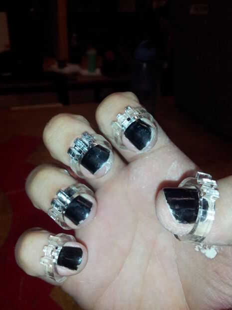 Me corte en el cortador del laser Trotec y re-había probado en mis dedos. Ven muy bien! Usé 4,5 mm de plástico transparente para la mina como quería carnosos y estable, pero no quieras ser visto fácilmente. En retrospectiva, podría ser mejor experimentar con formas ovaladas como alcance de la mano no son realmente que circular y pueden ser más cómodos a largo plazo con óvalos horizontales. También en retrospectiva, puede que desee llama tu a ser un poco más grande que usted puede esperar porque la arcilla de papel terminó haciendo mio un poco apretado. Siempre puede añadir más arcilla de papel a ellos y endurecer si es demasiado flojos.