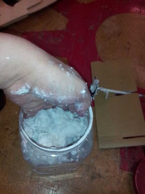 Yo uso una receta ligeramente modificada a la que se encuentran en UltimatePaperMache.com. Arcilla de papel de Jonni seca duroes realmente barato y formas bien una vez que se seca por el lijado, por lo que es perfecto para nuestras garras. También pasa a hacer un material de hueso mira muy realista una vez terminada hacia fuera correctamente.