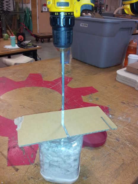 Romper el papel con las manos en trozos pequeños, sobre todo el 1-2", poner todas las piezas en su mezclador y picar hasta es picada. Si aún ve bultos, necesitará cortar más. Utilizar un procesador de alimentos en casa para esto, pero como yo estaba haciendo en TechShop, usé un taladro con una pintura revolviendo poco. Funcionó ok, pero no hay donde cerca, así como un procesador de alimentos. Usted puede también romper esto a mano, pero tendrá mucho trabajo para mantenerlo de ser grumosa.