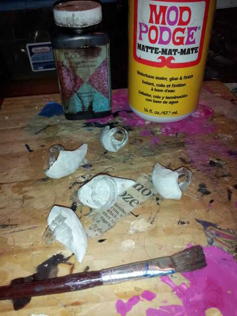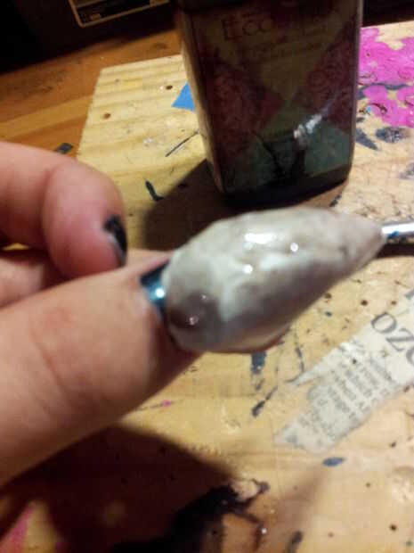 Me pareció la mejor manera de conseguir un hueso real en este aspecto de la arcilla de papel sellar este con Mod Podge. Hay todo tipo de materiales que usted podría tener a mano trabajo igual de bien y una descafeinada de PVA pegamento podría incluso estaría bien. Había pintado esto en y deje secar. No pegote, sólo una fina capa de pintura. Si le parece demasiado espesa, está probablemente. Poner un poco de agua en el pincel y lo delgada y extendido hacia fuera. Siempre puede Agregar una segunda capa más tarde.