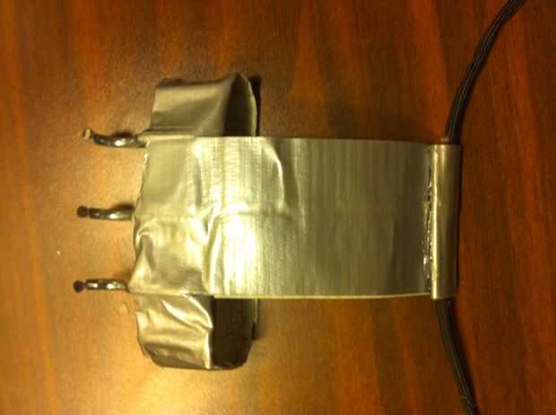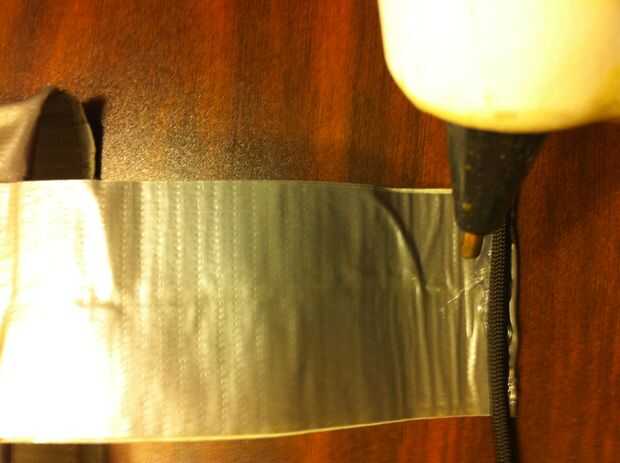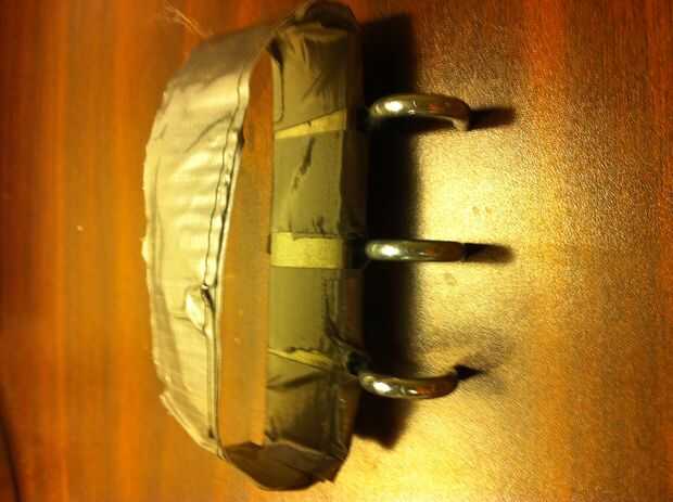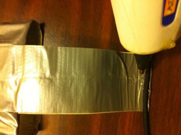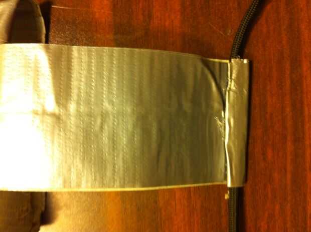 3). estimación de la distancia de los 2 mediados vacíos a su muñeca, cortar 2 tiras de cinta doble que la longitud y agregue 1 pulgada a esa longitud. La pulgada extra se utilizará para garantizar el Paracord. Reforzar con varias capas de cinta.