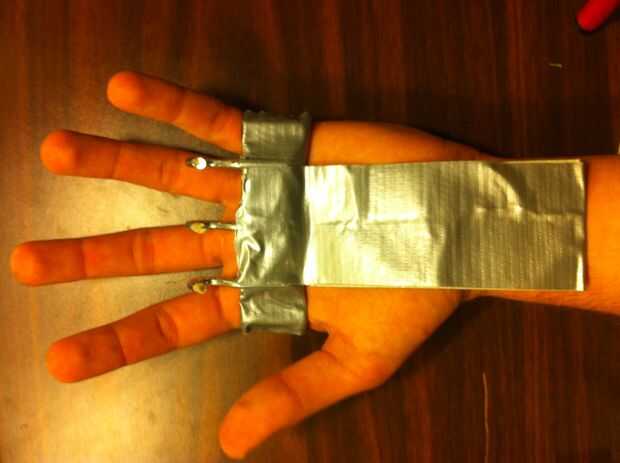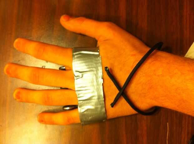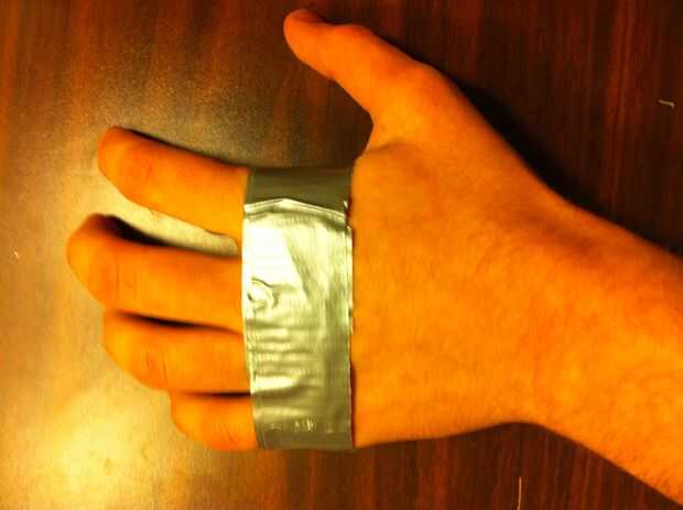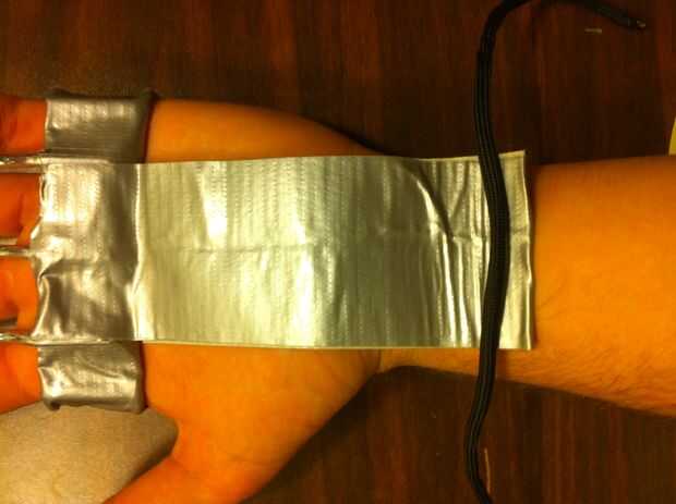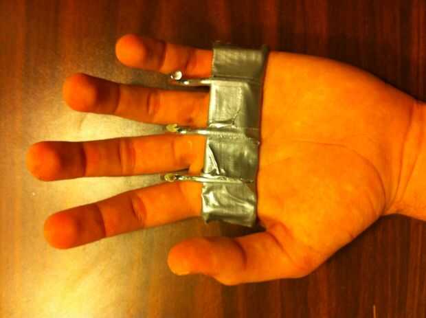 1) empezar con sólo una delgada banda de cinta va alrededor de tu palm y secado ganchos y Metal Plat (la plataforma)