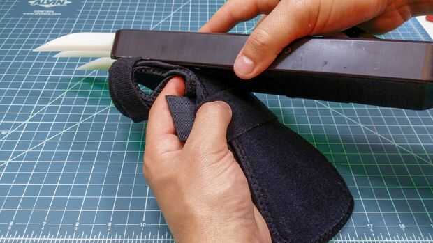 Aunque no es necesario, añadimos unas tiras de Velcro para Fije la caja al brazo. Probarlo sin primero y luego si se siente el bamboleo del recinto alrededor o simplemente no se siente seguro, agregar las correas.
