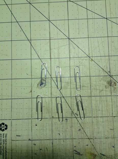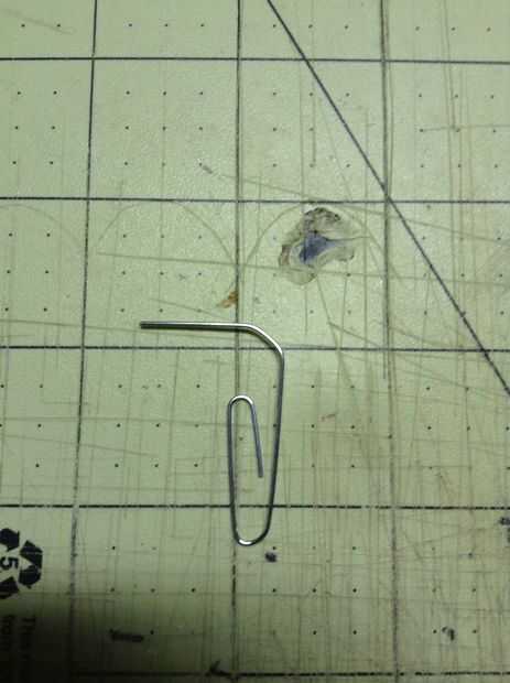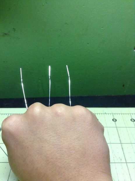 Para que funcione, tendremos que hacer las garras Coloque en nuestras manos. Para ello, necesitaremos tres clips cada mano. Para hacer estas piezas, tome un clip y desplegar la parte larga para que sea un ángulo de 90 grados, como en el cuadro uno. Deshacer el resto del camino hasta que se ve como la siguiente imagen. Debe adaptarse a su mano como tal. A continuación, doblar el clip por lo que parece la cuarta foto. Repita para los otros dos.