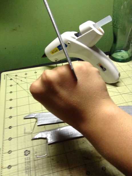 Para poner juntos, simplemente tomar una pistola de pegamento caliente y poner un grano pegamento en el extremo y poner el clip en el extremo, como se muestra, luego agregar un poco de pegamento alrededor de él, como se muestra. Coloque en su mano como en las fotos.