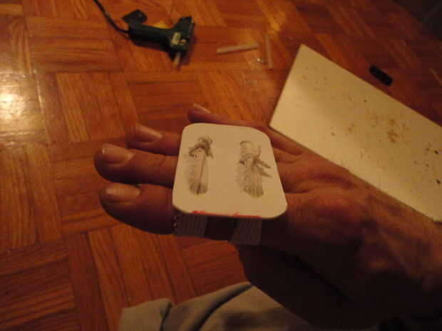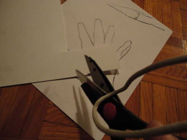 Aquí es donde su plantilla de la mano de su hijo y la lámina de plástico. Se usa para obtener el tamaño bruto para tu montura de plástico.