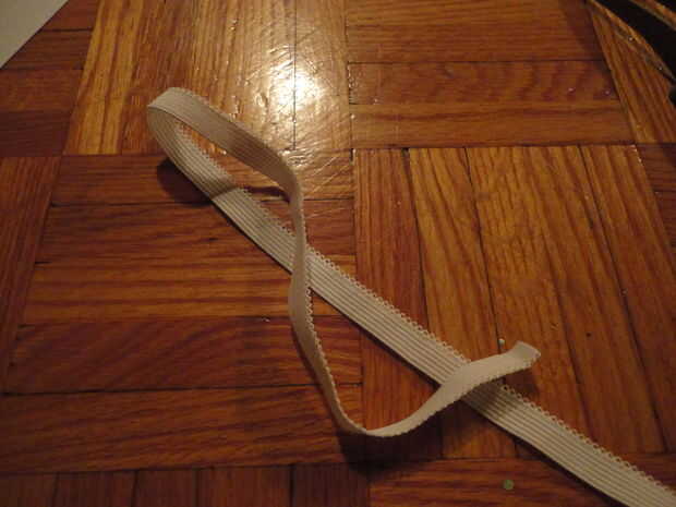 Ahora cortar dos tramos de la banda elástica que son lo suficientemente largos para ir alrededor de la mano de su hijo y todavía tienen suficiente para atar un nudo. Seguro que usted podría coser esto si lo prefiere, pero será caliente pegado sobre la parte superior de todas formas.