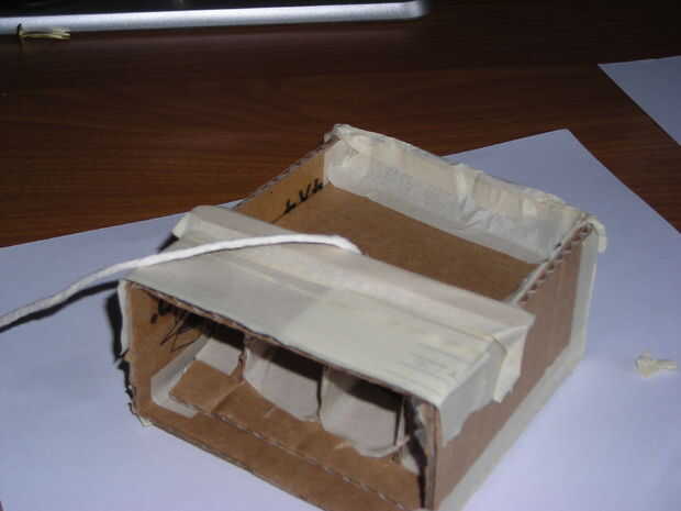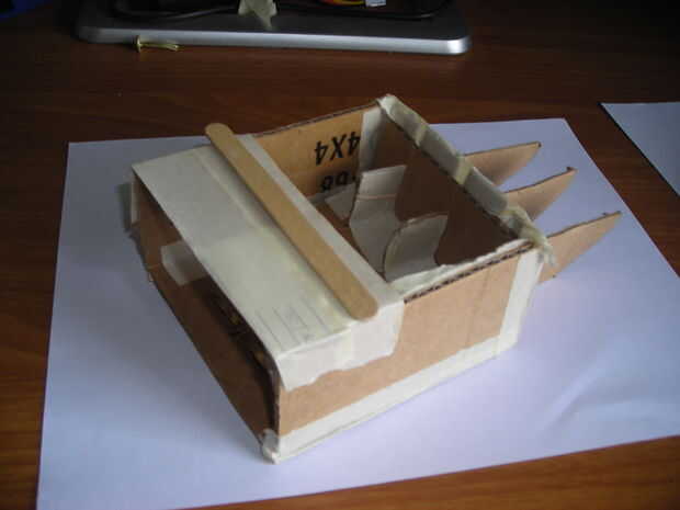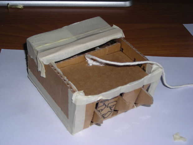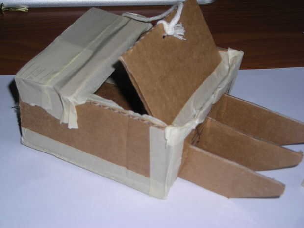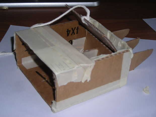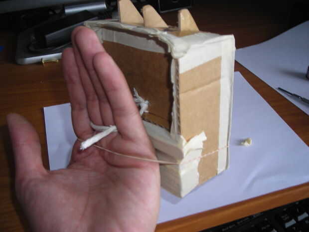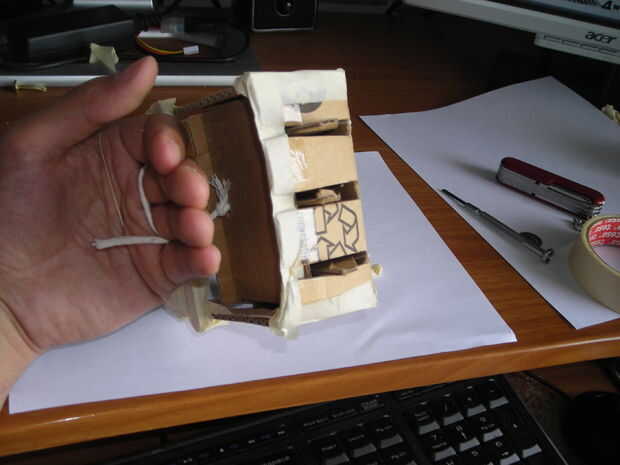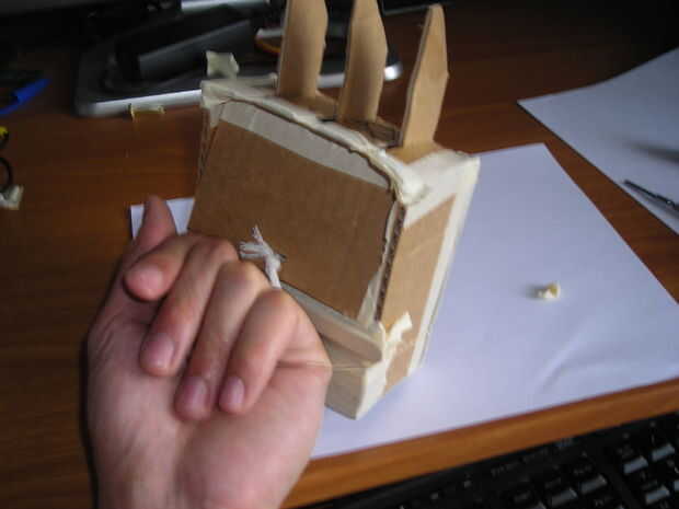 luego añadir una banda de caucho alrededor de la caja, para que se puede sostener para su y y poner la cuerda alrededor de su dedo, para que al cerrar la mano las garras saldrá :)