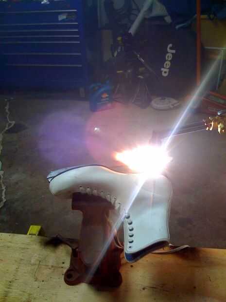 Utilicé mi antorcha amigos para cortar las hojas de la zapatilla, que generalmente cogiendo el zapato en el fuego...