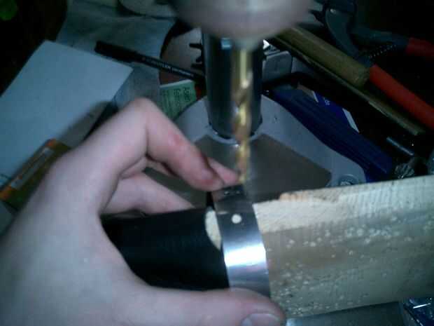 Además necesita un pequeño agujero en el otro en la espalda para sostener el resorte que está conectado con la lámina del pulgar; el resorte debe fijarse así que apunta absolutamente exactamente en la misma dirección como lo hace el pulgar. Significa que tendrás una primavera bastante más larga que para los otros dedos y nota que la dirección de los puntos del resorte es ELA la dirección tire la hoja. Así que si usted no adjunta adecuada no tire hacia atrás la garra, pero a un lado (seguramente a la cara interna que podría lesionar el resto de la mano, incluso si la hoja no está afilada).