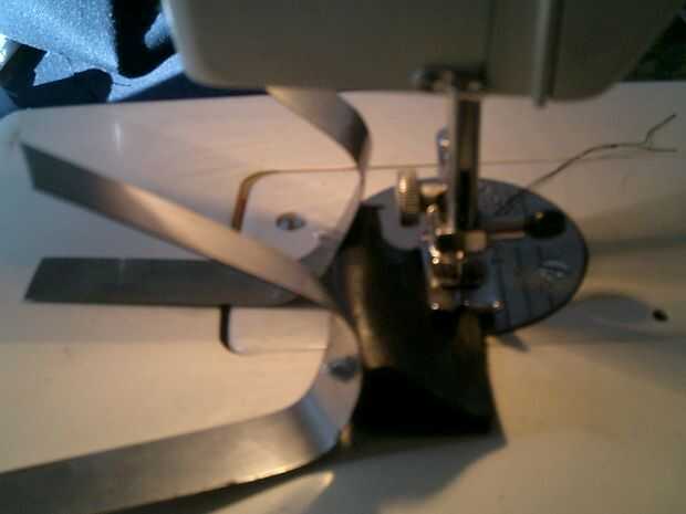 tienes que doblar hacia atrás las rayas un poco, para que usted obtenga el cuero debajo de la máquina de coser. Ahora haga una línea recta y casi todo lo de derechos de emisión (2-3mm debe hacerlo. reducir