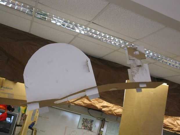 Las especificaciones para el traje son los siguientes. El traje necesita ser hecha totalmente de cartón. También tuvo que estar construcción ranurada, cintas y otros materiales de apoyo no se podrían utilizar. Por último, tenía que ser simple suficiente por lo que podría ser construido por los padres de un niño. El rango de edad específica para este proyecto son niños de diez a trece. El traje también es necesario para poder ser desmontadas por lo que puede apilar las piezas unas sobre otras para el almacenaje fácil.