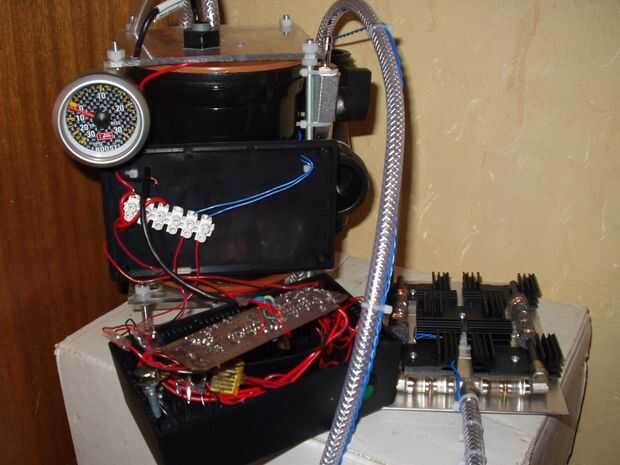 (Fig. 40) es el sellado hidrógeno y oxígeno producción cámara con electrónica y placa Unido y listo para ser probado. El bloque amarillo que se aprecia dentro de la envoltura de los circuitos de control es la conexión con el encabezado ICSP en el programador de Pic.