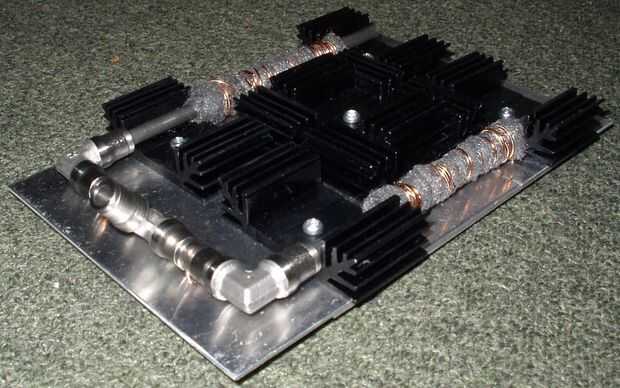 El hidrógeno que se quema la placa fue construido usando la investigación de varios sitios web de energía alternativa, revistas y artículos. A continuación se muestran dos imágenes de la encimera acabada (Fig 38 y 39). La placa fue construida por la obtención de algunas tuberías de acero inoxidable y corte para formar una C o una forma de U. Los extremos fueron conectados con acoplamientos neumáticos diseñados para empuje y mantenga una gran cantidad de presión antes de volver. Los dos extremos en la parte superior de la U fueron sellados con tornillos revestidos de resina epoxi. Luego se perforaron cinco orificios de salida de gas de 1mm trozos más largos de la tubería a lo largo de su centro y todo frente a la misma manera. Lana de acero luego fue envuelto alrededor de la tubería para cubrir los orificios de salida y permitir el comportamiento del catalizador como se mencionó anteriormente. La instalación de la tubería entera entonces fue atada a una hoja de aluminio con varios grandes disipadores de calor para ayudar a disipar el calor de la salida. Un tubo de salida de acero inoxidable fue entonces atado al cruce en la parte inferior de la U, que entonces conectado a la tubería de prueba la presión obtenida para contener el hidrógeno.