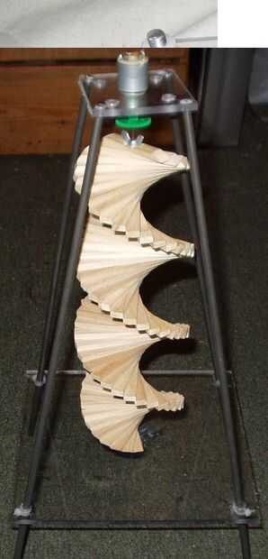 o descarga el circuito. Obviamente no es aceptable para que un rectificador de diodo se utilizó en la tensión de salida de motores para proporcionar un voltaje positivo correcto para cargar la batería. Un segundo problema era que el viento que sopla en la ruleta causaría a acelerar y desacelerar la dirección del viento cambiado y por lo tanto, la dirección de la flecha. Esto fue solucionado colocando tiras de tarjeta laminada hacia abajo de las piernas con el fin de canalizar el viento y hacer que la ruleta gire en la dirección preferida (ver Fig 23). Un bajo nivel de ruido y phono de baja atenuación del cable fue utilizado otra vez para el voltaje de la salida.