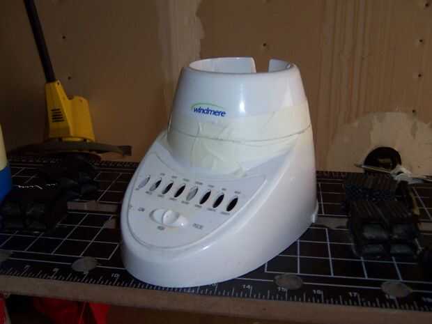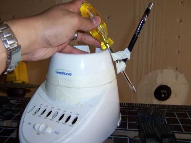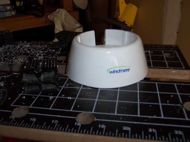 necesitaba la base para sujetar la jarra en su lugar por lo que picado la parte superior de la base de plástico. Envuelve cinta alrededor de la zona se corte y utiliza un lápiz para marcar de donde tenía que cortar.