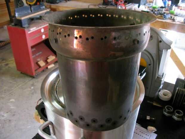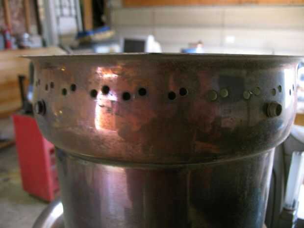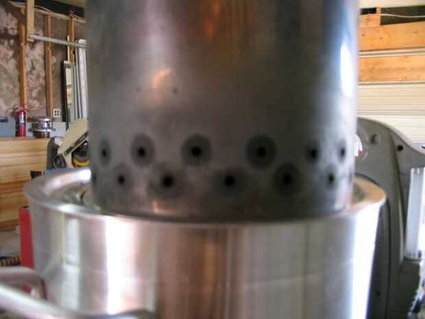 Los agujeros de la tapa "afterburner" se compensan un poco para dar un poco "remolino" a los gases de combustión.