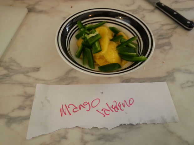 El siguiente fue hasta jalapeños mango. Sólo áspero chop que cosas para arriba y échalo en un bol.