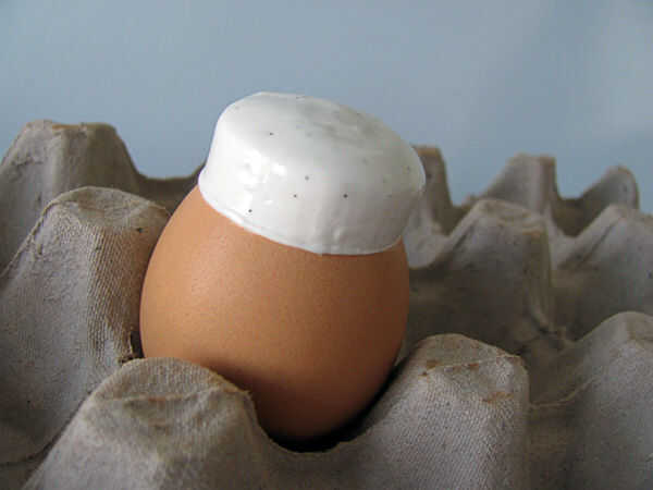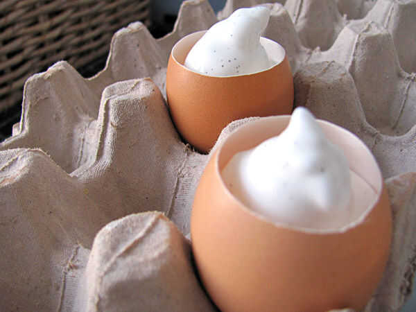 Jeringa tu mousse en el huevo, pero no todo el camino a la cima, porque aún necesita ampliar.