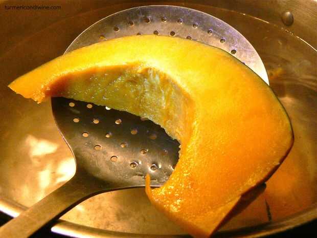Hervir una olla grande de agua. Colocar 3-4 trozos de calabaza en el agua. Escaldar durante tres minutos y luego retirar del fuego. Repita hasta que todas las piezas son blanqueadas.