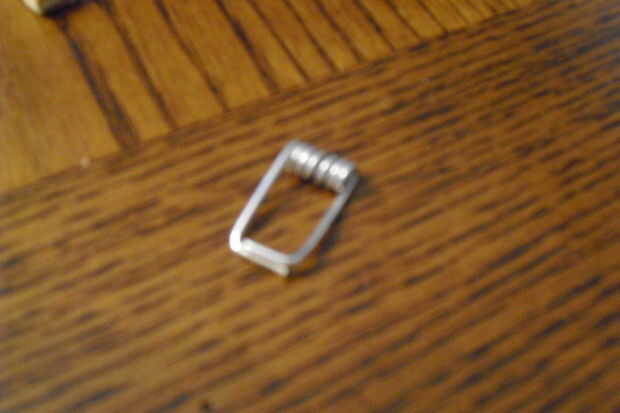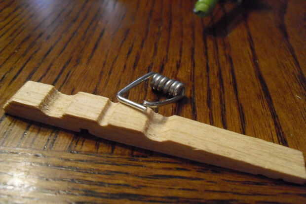 Una vez que han desmontado el pasador ropa tienes un resorte y dos mitades. Todo lo que necesitas es un lado de la clavija de ropa y la primavera. La primavera será el perno que traba y lo que empuja el proyectil hacia fuera. así que para modificarlo necesitas un par de pliars que puede cortar el alambre. En la primavera usted notará dos curvas de ángulo de 90 grados que se llevó a cabo en los lados de la clavija de ropa. sólo necesitará cortar uno de los lados doblados aproximadamente 1 o 2 mm.