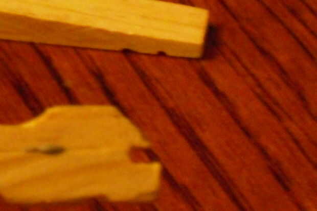 Ahora tomamos ese pedazo de pin de ropa usted cortar y se pegue a nuestra ballesta. Tome el extremo con la diferencia que guarda y tope contra el extremo posterior de la ballesta. Ahora debe ser un pequeño espacio. Esto es lo que queremos.