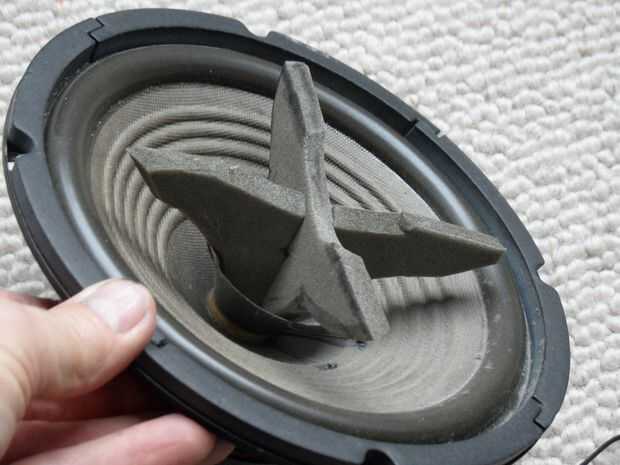 La espuma puede ser pegar con un poco de pegamento común. O si no está seguro acerca de dañar un altavoz puede reutilizar, dejó sólo la espuma. Como la malla está presionando hacia abajo en él ligeramente no moverse.
