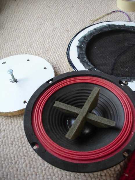 Juntar las piezas, el altavoz empujando contra la malla, entonces la Junta de círculo con la tuerca hacia el imán en la parte posterior del altavoz.