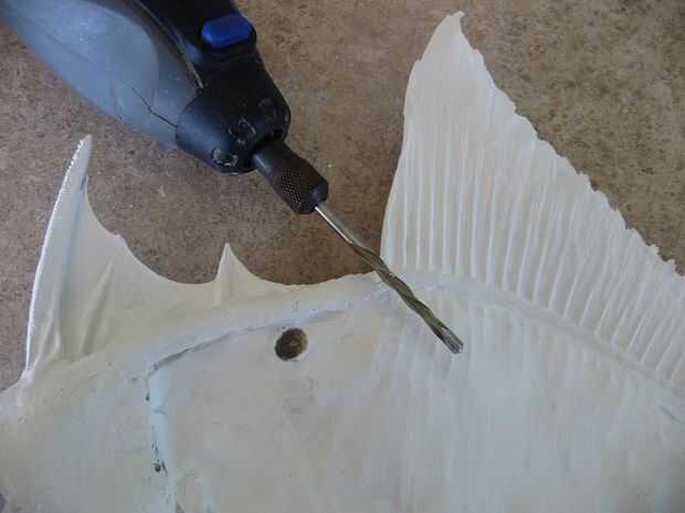 Utilizando una dremel, perfore un agujero en la parte superior de los peces para colgar. Si vas a colgar un grano o pendiente de la cirugía, esperar y hacer esto después de que el pescado está colgando así que usted puede medir donde hacer el agujero.