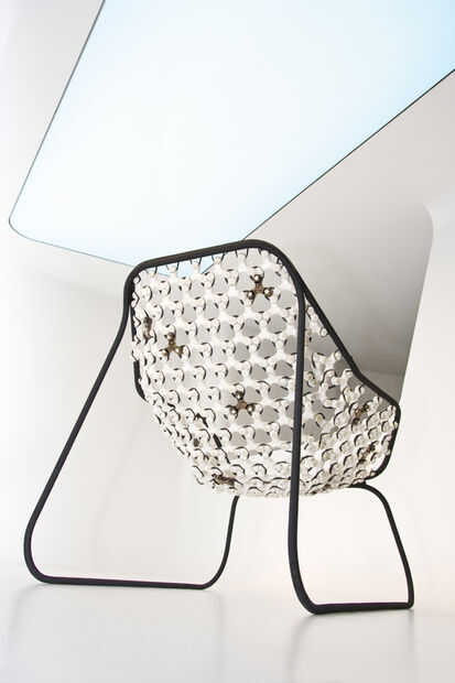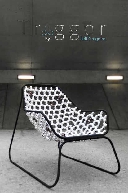 gatillo es una confortable tumbona. El marco es diseñado de manera tal que es una hermosa silla en ambas versiones. La primera versión se hace de tela, que constituye la serie relativamente barata. Porque los patrones de cosido en la estructura de sándwich de tela/espuma crea un efecto 3D. La segunda versión se centra en exclusividad y artesanía, en realidad está hecho de 196 enlaces cerámica hecha a mano de arcilla belga. La forma de los enlaces es determinada así que limitan los puntos de contacto garantizando un confort elevado y duradero. Esta serie se puede utilizar como 'Trigger' o como un truco promocional para la versión de tela