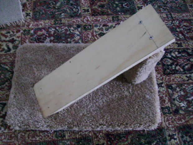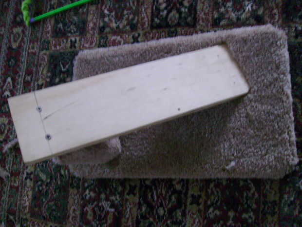 hice lo mismo con el poste que sostiene el tablero del rasguño. Después el pegamento, yo volver a perforar a través de la alfombra y atornillado hasta comprobar que todo se ajuste bien. Afortunadamente, fue... Hay 2 tornillos cortos, pasando por el tablero inferior en el tablero del rasguño y 2 en el post así (no foto).