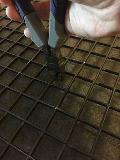 Usar los clips del blanco que vinieron con el filtro, colocar el filtro a la estructura de alambre de plástico negro.