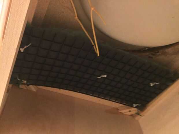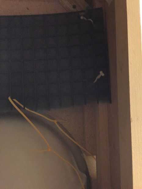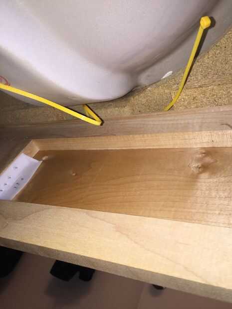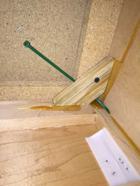 Ahora, para montar el filtro debajo de la cubierta, usé algunos lazos zip a través de las ranuras de los orificios en la instalación de la encimera, por lo que el filtro puede ser directamente encima del cubo de amargo.