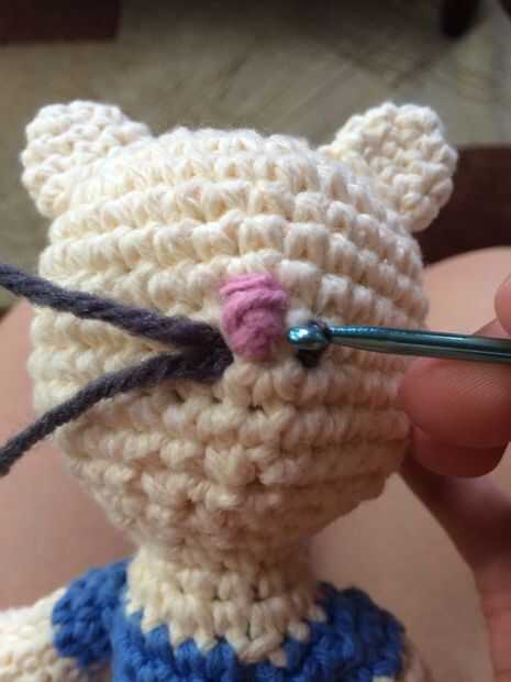 En el siguiente voy a decirle cómo crochet un animal lindo, peludo.No sé qué clase de ser es. Cuando planeaba hacer un mono. Después añadí el hocico parecía un oso. Después añadí los oídos que parecía convertirse en un gato. Así que le di un par de o