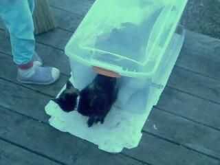 Comodidad, para saber que está permitido en la cama y poner su mascota dentro de la parte superior. Cuando esté listo, poner la parte superior en y dejar salir la puerta. Si no entra por la puerta, que jueguen dentro y sale en la parte superior, luego vuelva a cortar el agujero (con todos acolchados y ropa de cama quitado).