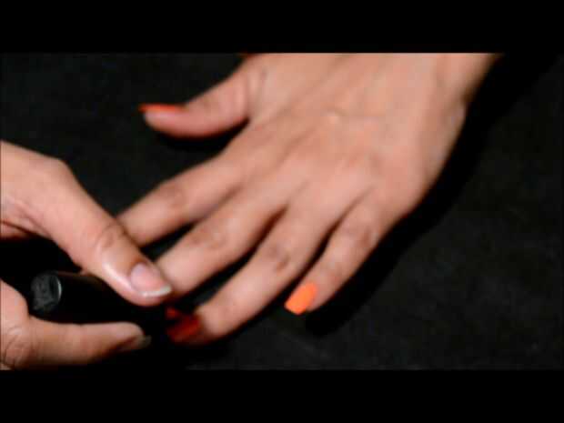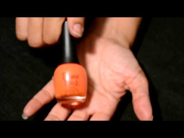 Para el color he utilizado un color naranja llamado mandarina de dedo pinturas esmalte de uñas para todos los clavos (cualquier esmalte naranja hará).