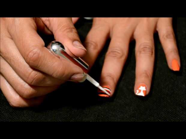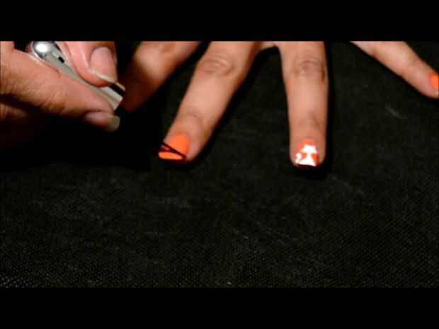 necesita: 5 uñas postizas, esmalte de uñas negro, blanco esmalte de uñas, uñas de plata y una negro uñas pluma de arte.Paso 1: paso uno lleva esmalte de uñas negro y en el fake nails pintura alittle más de la mitad de la uña. curva para que la secció