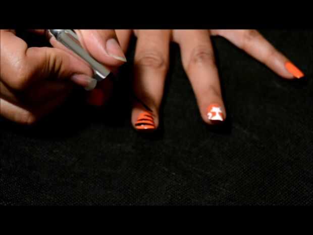 arte del clavo de rayas de tigreRayas de tigre Nail Art Tutorial Video