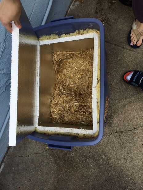 Las cosas que se necesita figuran a la derecha. Necesita una bañera Rubbermaid, algunos poliestireno aislamiento, algunos hay y una sierra. Usted tendrá que ver la espuma de poliestireno para que quede en la bañera Rubbermaid en todas las partes pero la parte superior. Necesita guardar un pedazo para la parte superior. Ahora necesita añadir el heno en la parte superior la espuma de poliestireno. Ahora, poner el la pieza guardada encima de las otras piezas. También necesita la tapa Rubbermaid para cerrar la casa. Ahora poner un ladrillo en la parte superior de Rubbermaid. El paso final es vi un agujero cuadrado de tamaño de un gato para que el gato puede obtener. Allí! Ahora usted tiene una casa de gato.
